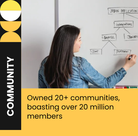 We proudly partner with brands to have built and owned 20+ communities, boasting over 20 million members across high-potential sectors like Real Estate, E-commerce Sellers, and Mom & Baby